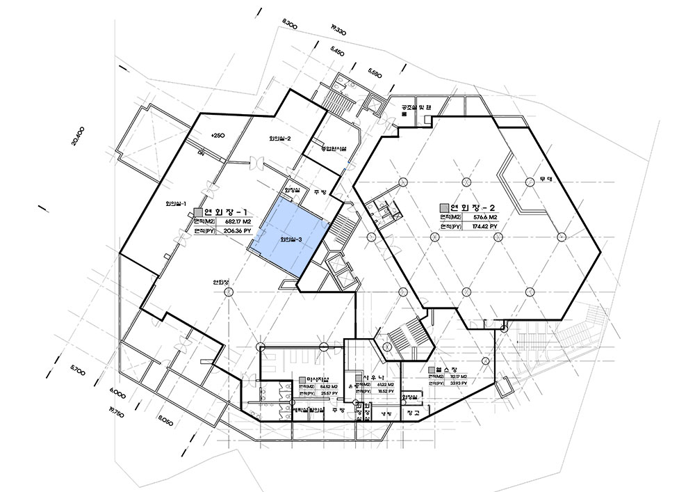 | 수용인원 | 450명 | 300명 | 150명 | 각각 20~30명 수용 | 라운딩 테이블 기준 | ||